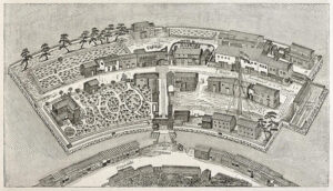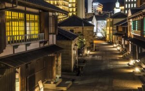 長崎・出島 現在の出島・夜間はライトアップされて観光名所になっています。